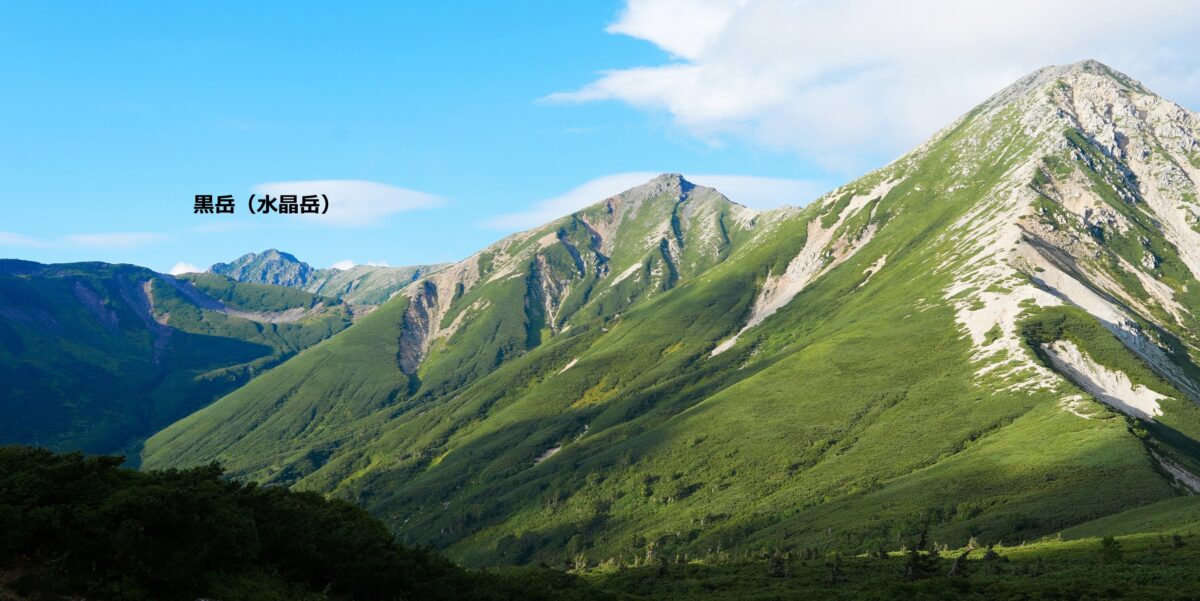 2025年8月に再度、黒岳に行ってきました。三俣蓮華キャンプ場でテント泊し、翌朝まだ暗いうちから歩き出し、鷲羽岳→ワリモ→黒岳と登りました。山頂では、生憎のガスで何も見えませんでしたが、雨が降らなかっただけで満足でした。黒岳は100名山の中で、登山口から最も時間のかかる山だと思っています(幌尻岳より時間がかかりました)。